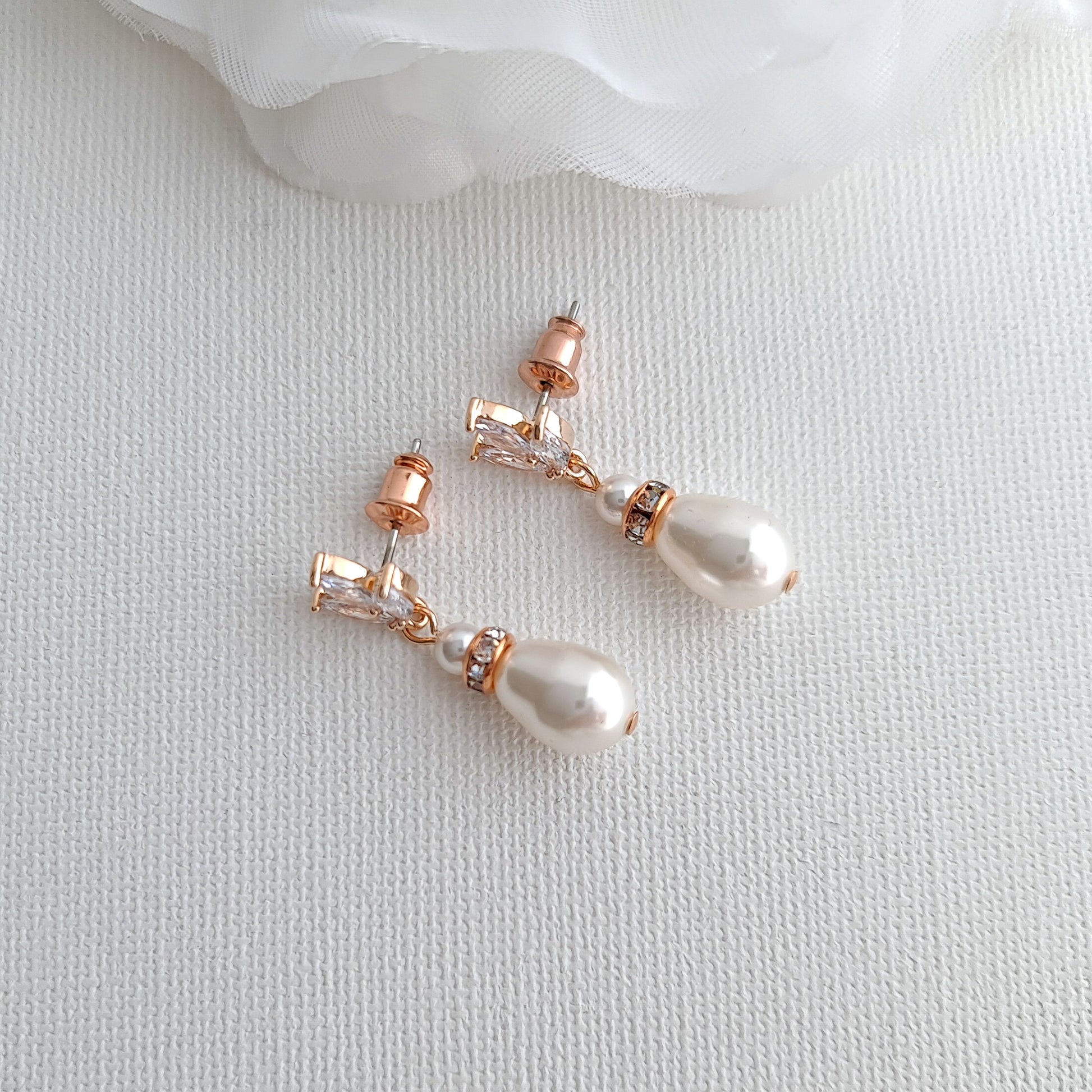 When choosing accessories for your wedding day, your jewelry should feel like a natural extension of your style. Whether you are wearing a minimalist, modern sheath dress that demands a touch of sparkle, or a gown detailed with nature-inspired lace and floral embroidery, these Rose Gold Pearl Drop Earrings are the perfect finishing touch.