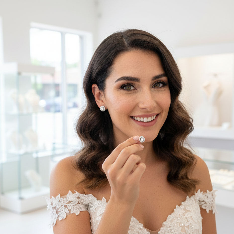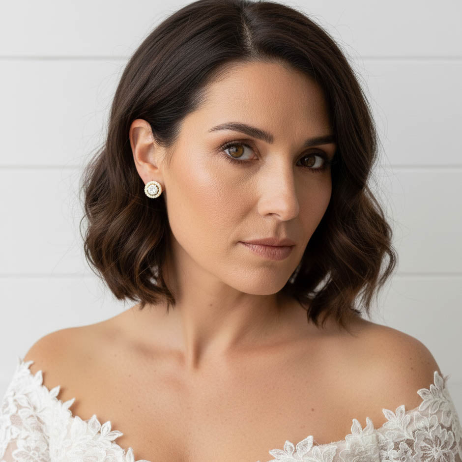 Simple and elegant round stud earrings are a great choice for brides and a handy piece of earrings that every woman should have in her collection. These beautiful small stud earrings are sparkly and are made with cubic zirconia. A versatile pair of round earrings that can be worn with your bridal gown, bridesmaids dress, or any outfit with ease to add a shimmering look. This silver-tone earring in rhodium plated cubic zirconia earrings is measures 1.1 cms or .43 inches. An affordable pair of earrings that you can add to your collection today!