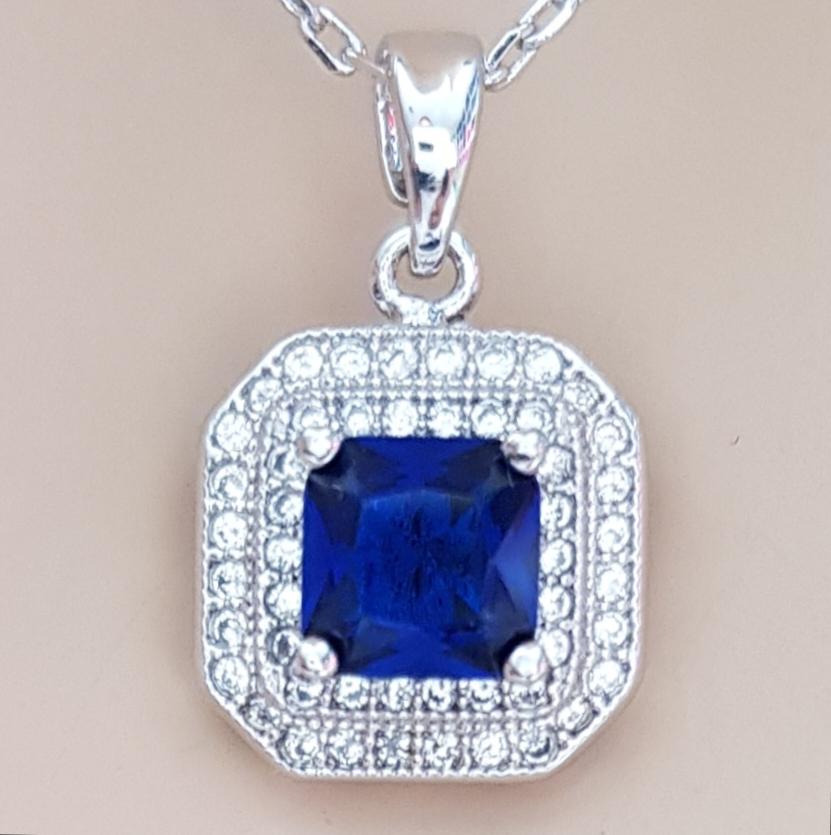 In a square design, this blue sapphire cubic zirconia necklace pendant is perfect for any woman as a gift. Add this eye-catching blue necklace with a classic design to complete your styling.