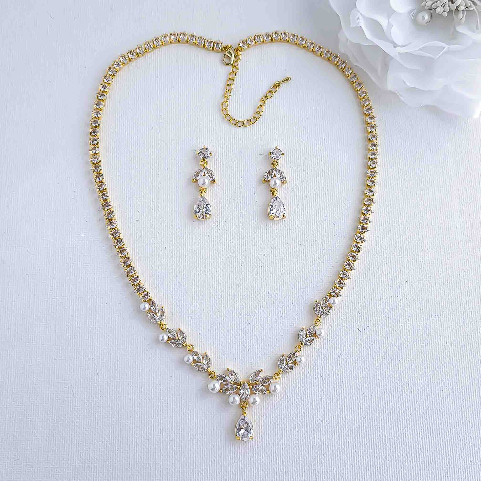 If you are looking for some classic elegance and sparkle jewelry set for your wedding day, these are beautiful bridal pearl necklaces set in gold for you to consider. The necklace set comes with matching earrings, and we have a good collection of bracelets if you like to add to your wedding jewelry set.