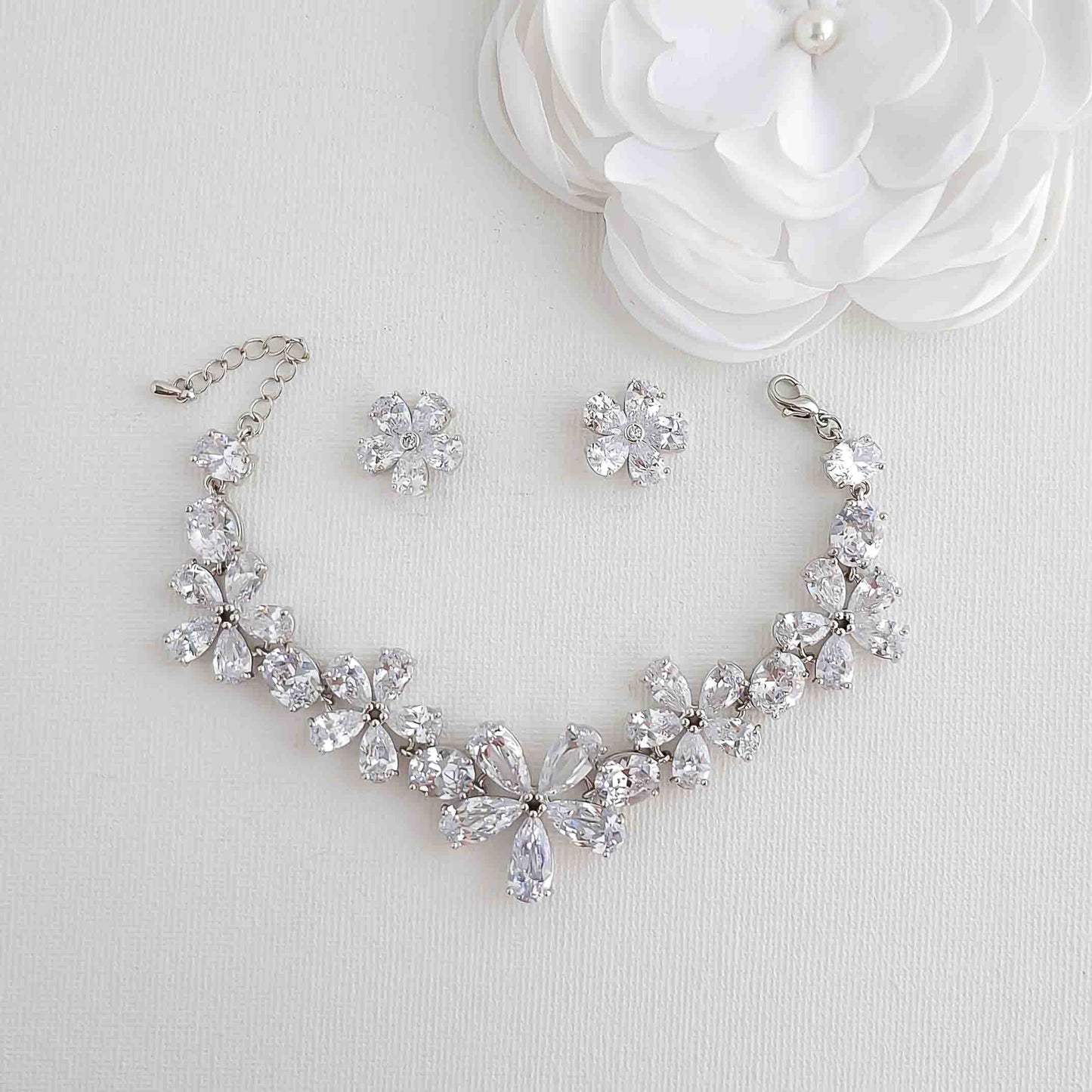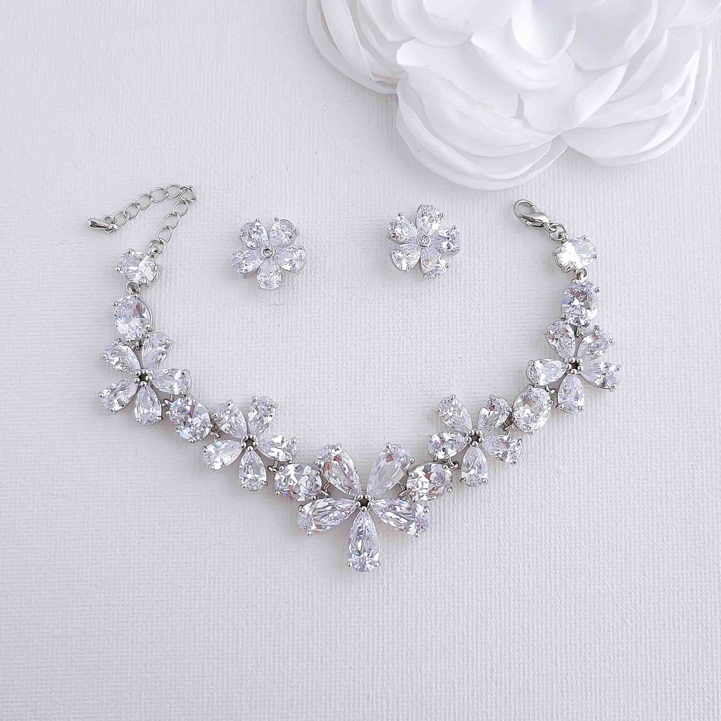 Flower Stud Earrings and Bracelet Set-Abelia
