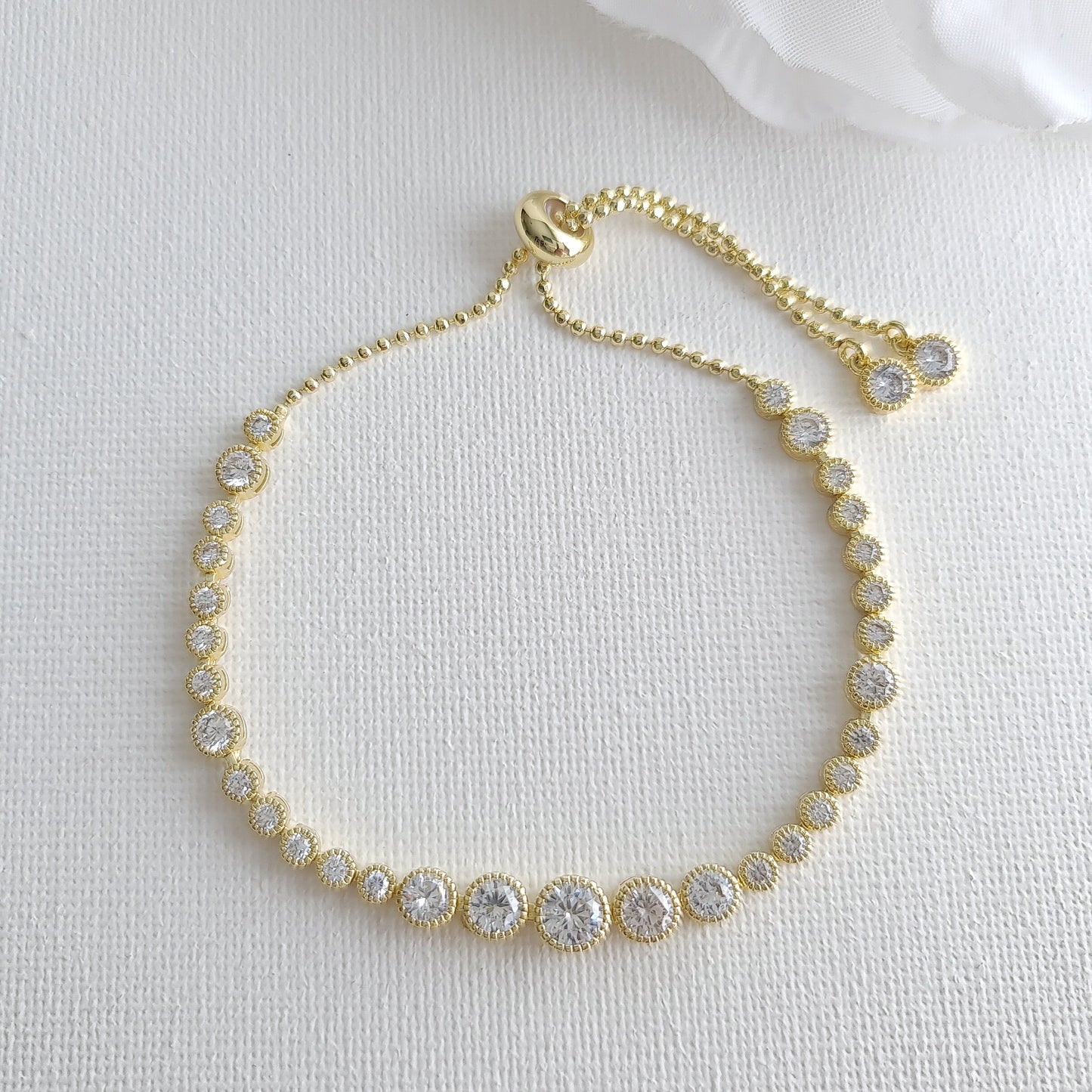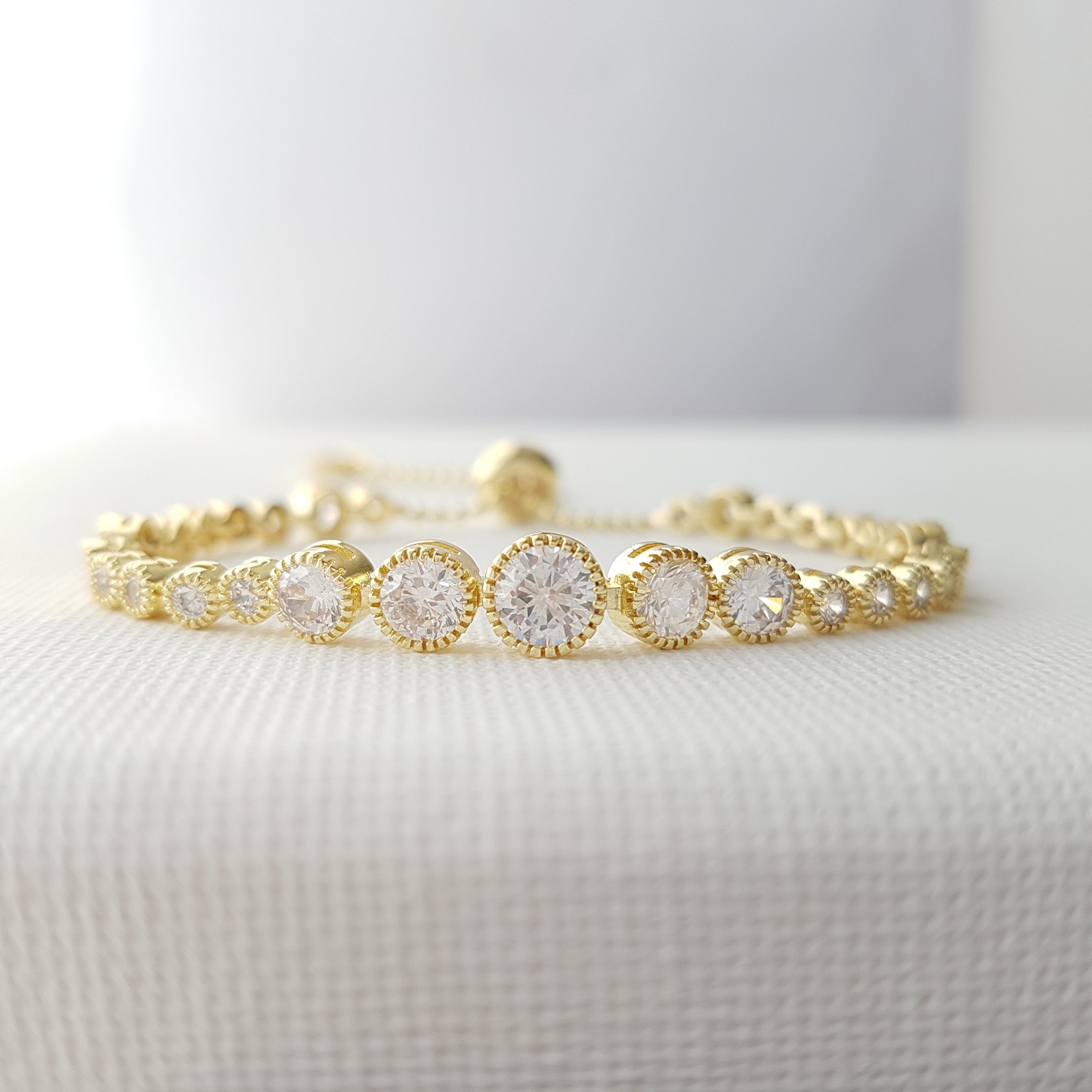 Adjustable Gold Tennis Bracelet with Round CZ Crystals for Brides & Bridesmaids