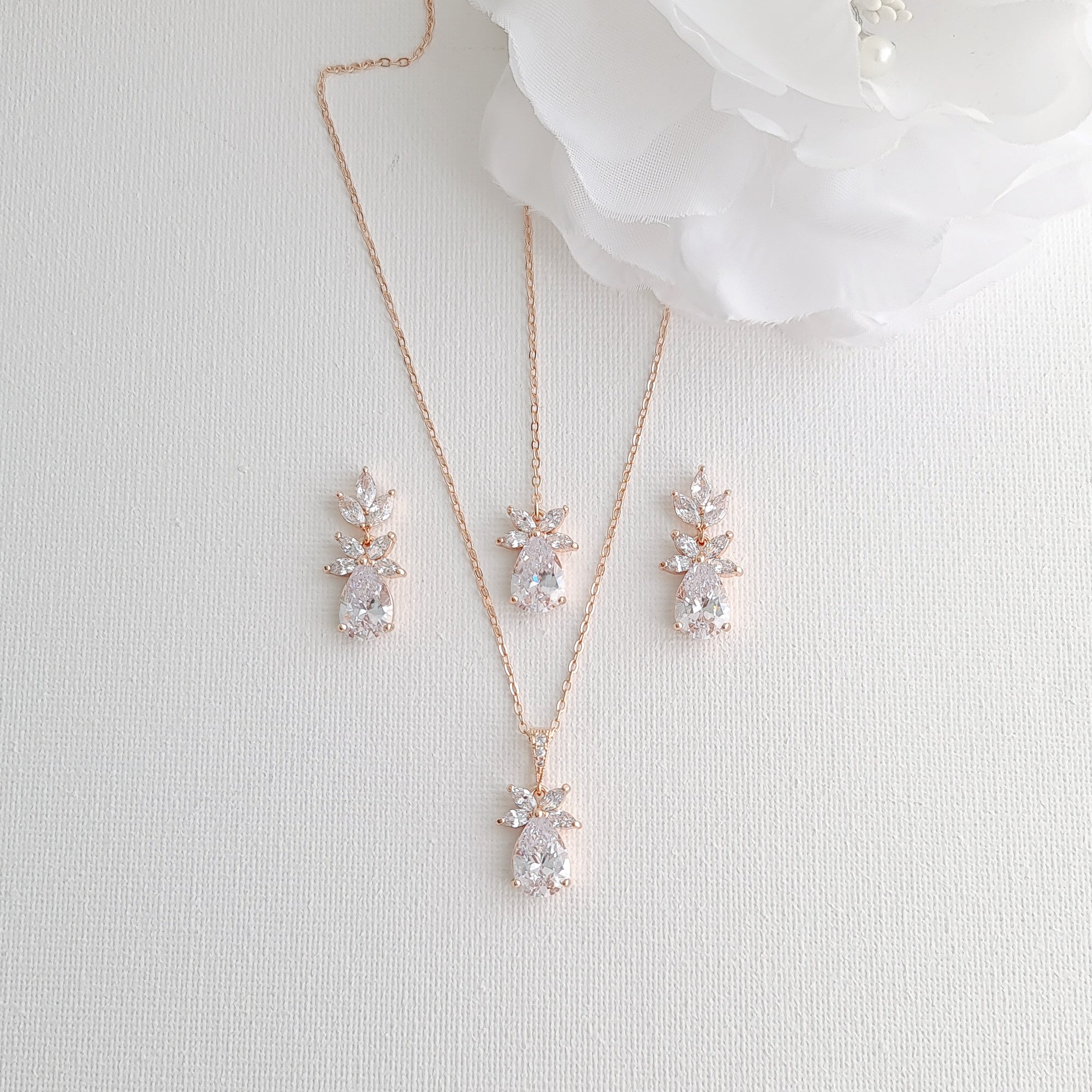 Simple Rose Gold Wedding Necklace and Earrings Set- Stella