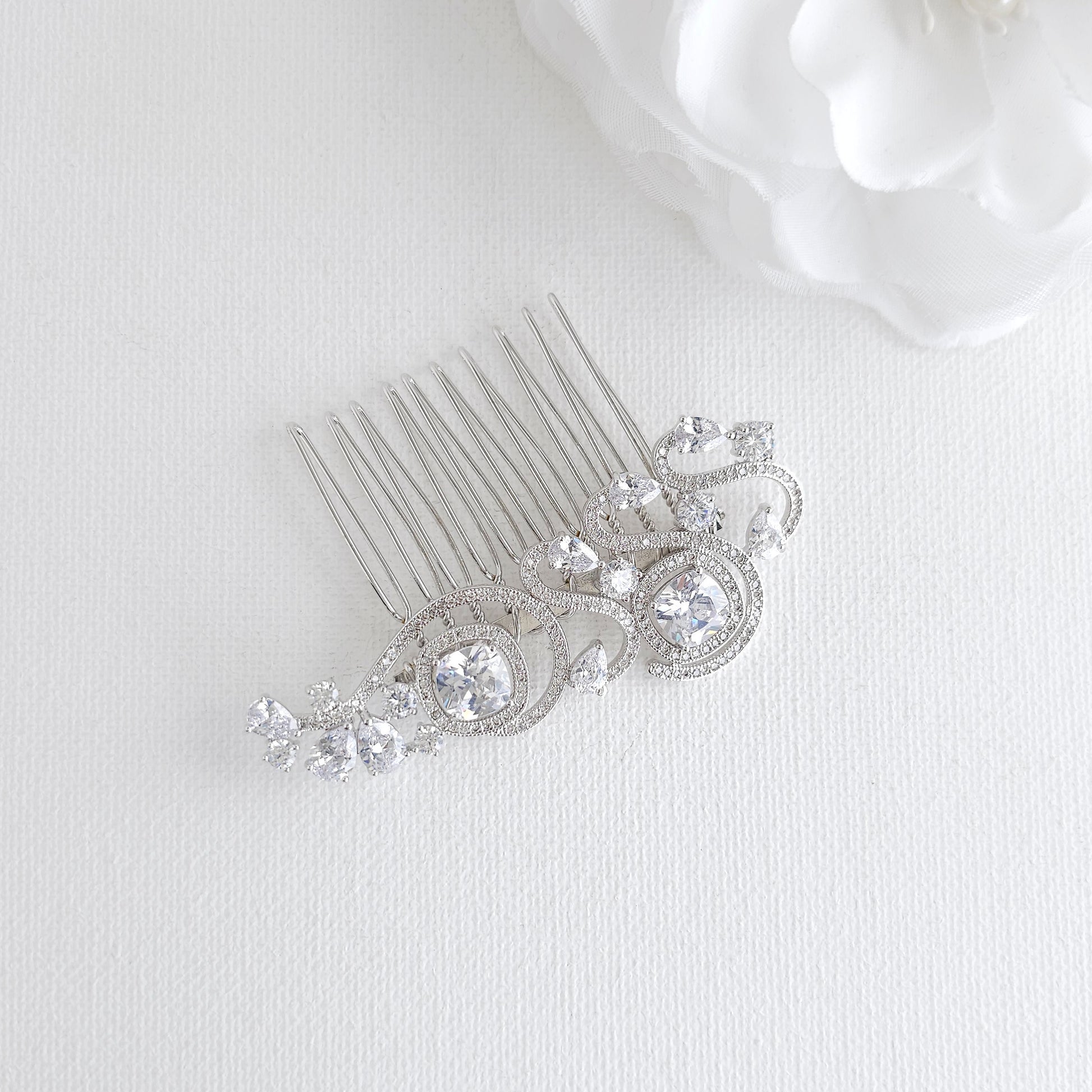 Small Bridal Comb for Veil | Cubic Zirconia Wedding Hair Piece-Casey
