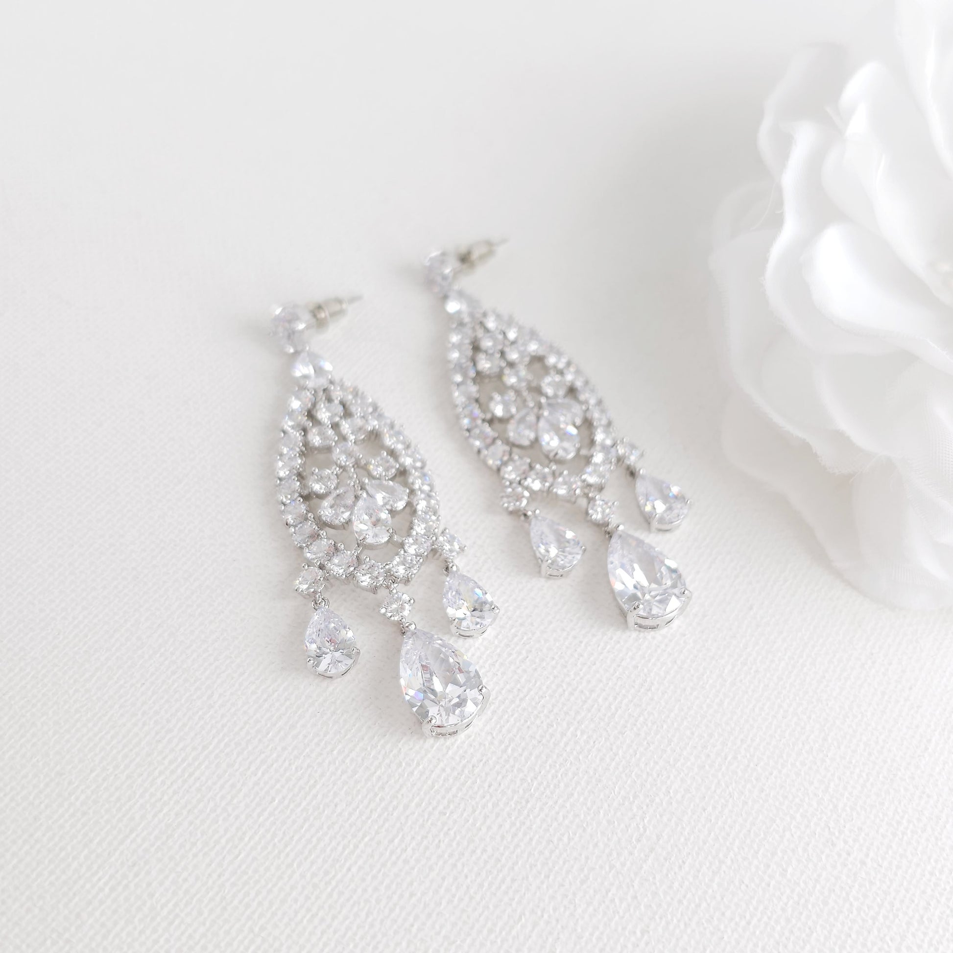 Large Silver Statement Chandelier Earrings for Brides & Woman- Courtney