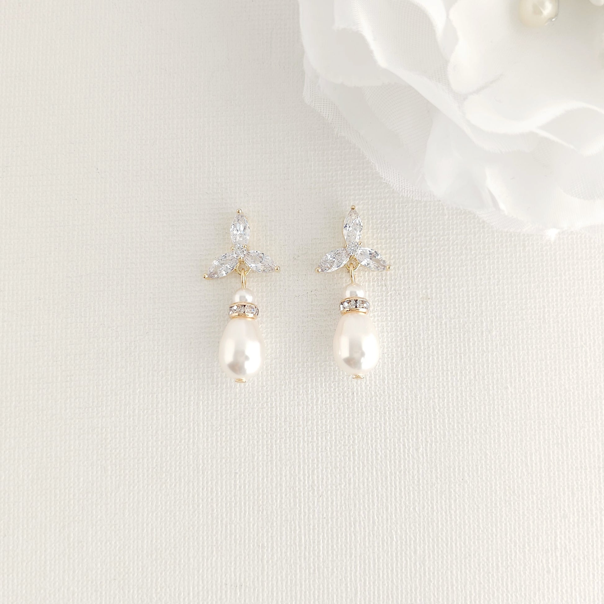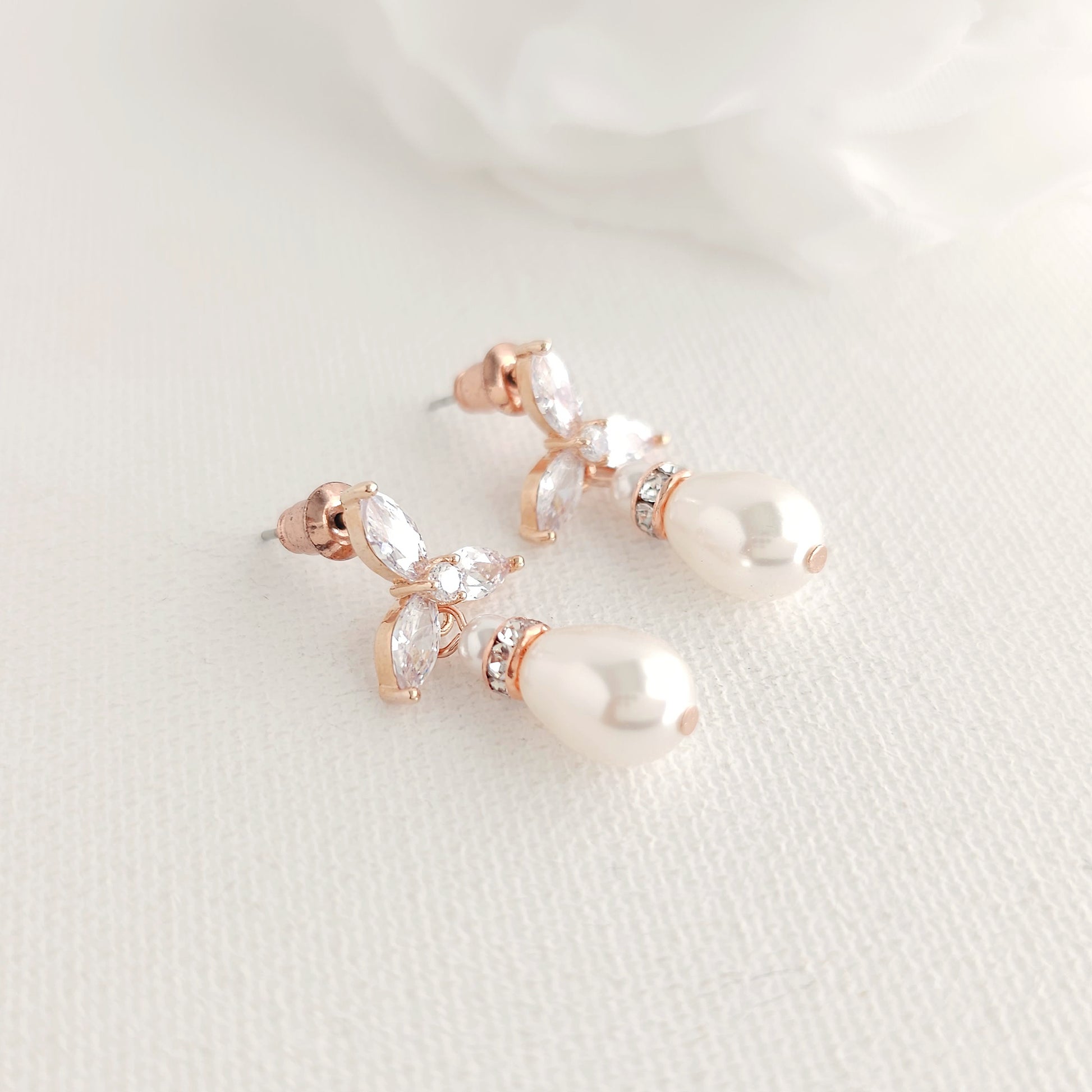 Rose Gold Flower Pearl Earrings: Simple Elegance for a Bridal Look- Flora