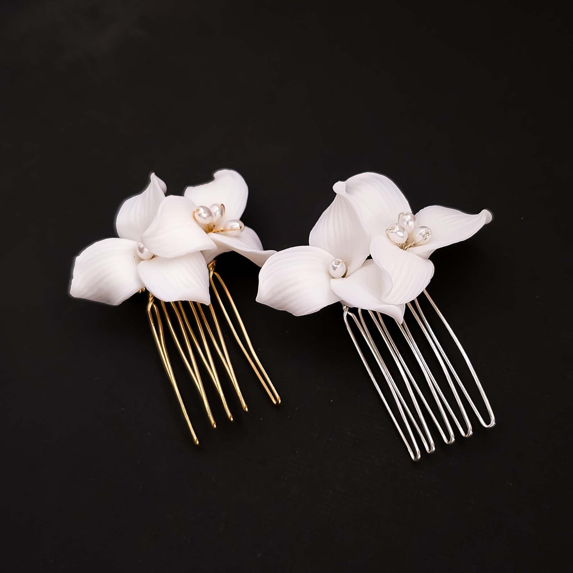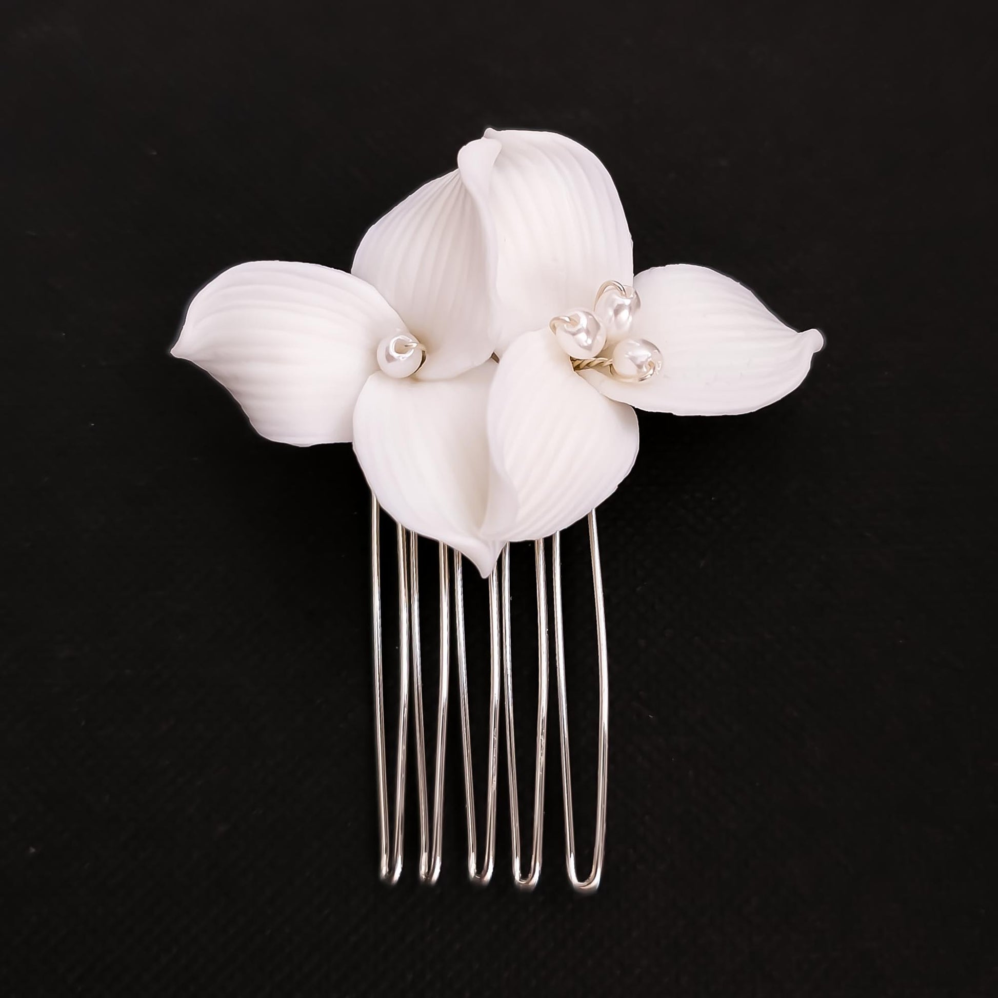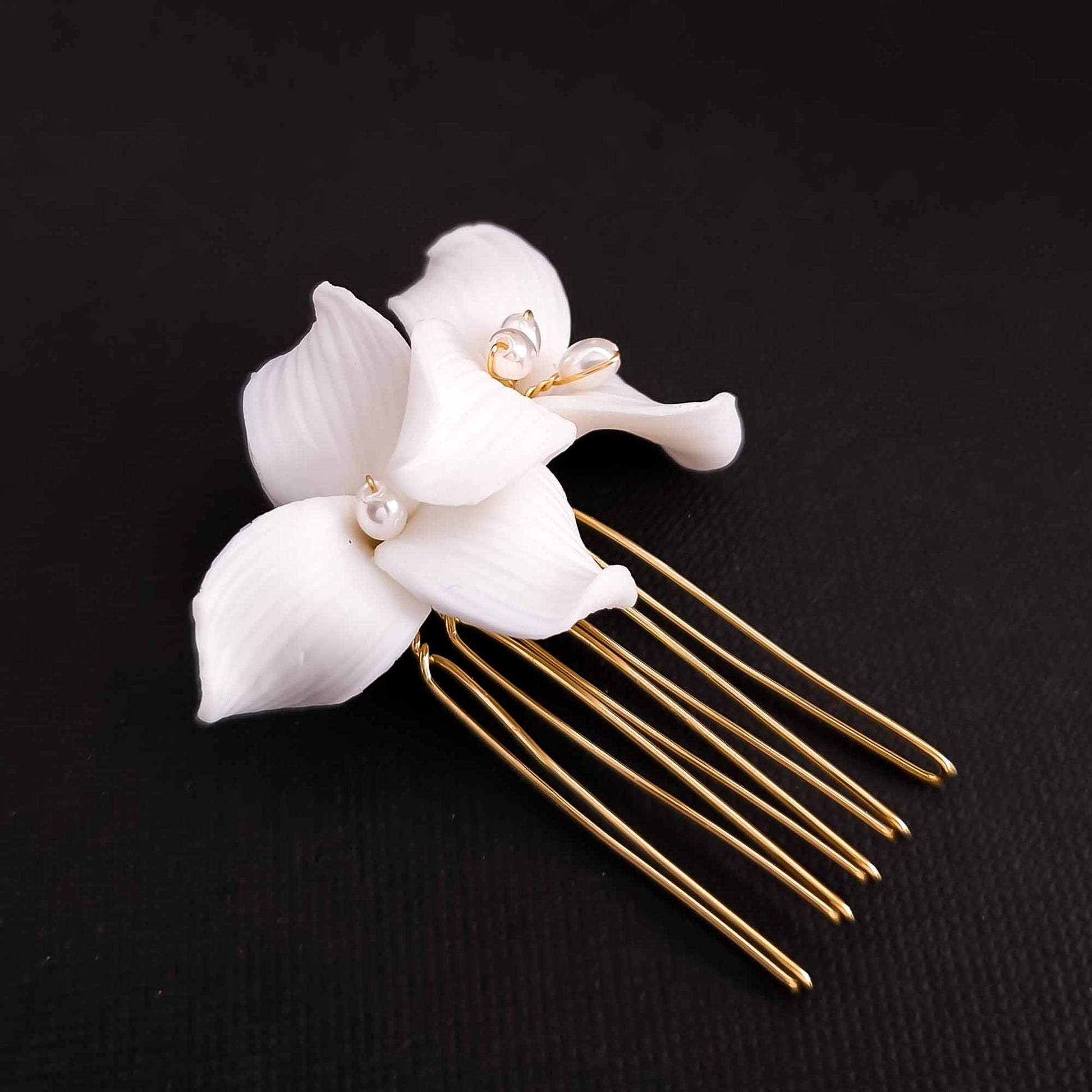 Crafted with delicate ceramic flowers, this comb is a versatile essential. While it's a stunning choice for brides and bridesmaids, its size and style make it equally perfect for flower girls, girls attending prom, or even for dressing up an outfit for semi-formal events like an afternoon gathering.