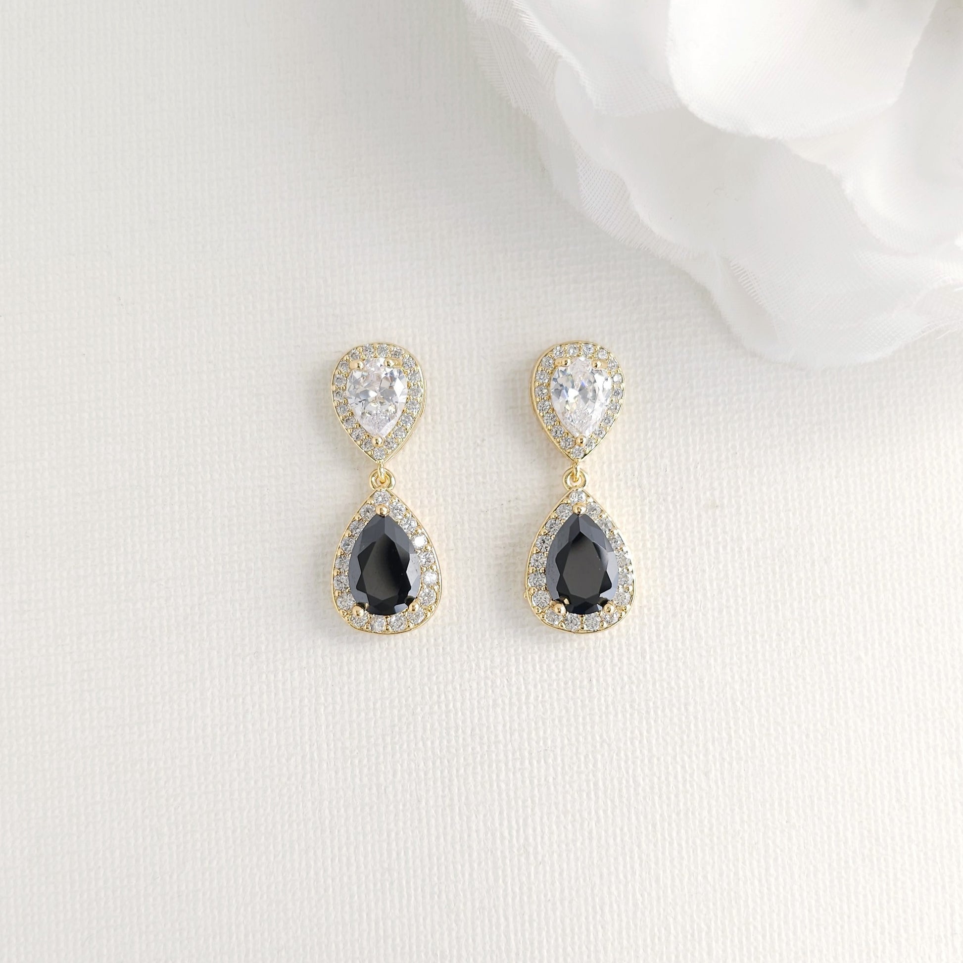 Where timeless romance meets modern drama, these elegant rose gold and black drop clip-on earrings are a stunning choice for your special day or any grand event. The warm, blushing hue of the rose gold setting provides a sophisticated contrast to the deep, mysterious allure of the black teardrop stone.