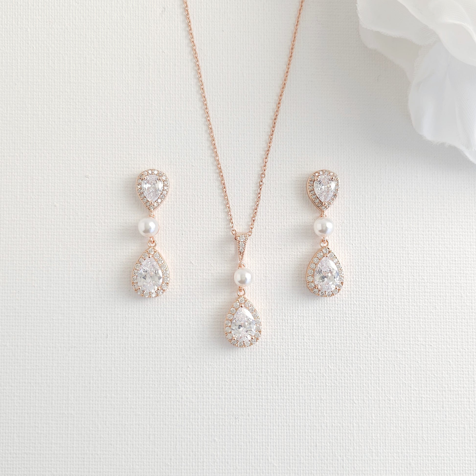 A Rose Gold Pearl Bridal Jewelry Set is designed to add a warm glow to your wedding day look.