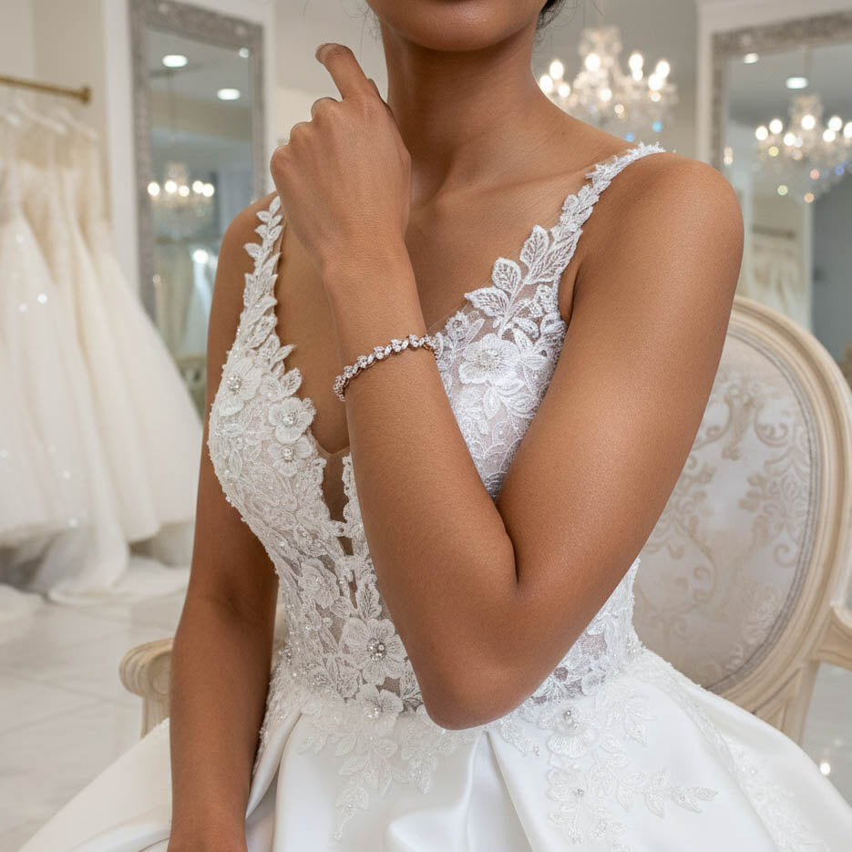 Sparkly Tennis Bracelet for Brides & Weddings Made of Leaf Shaped CZ Crystals