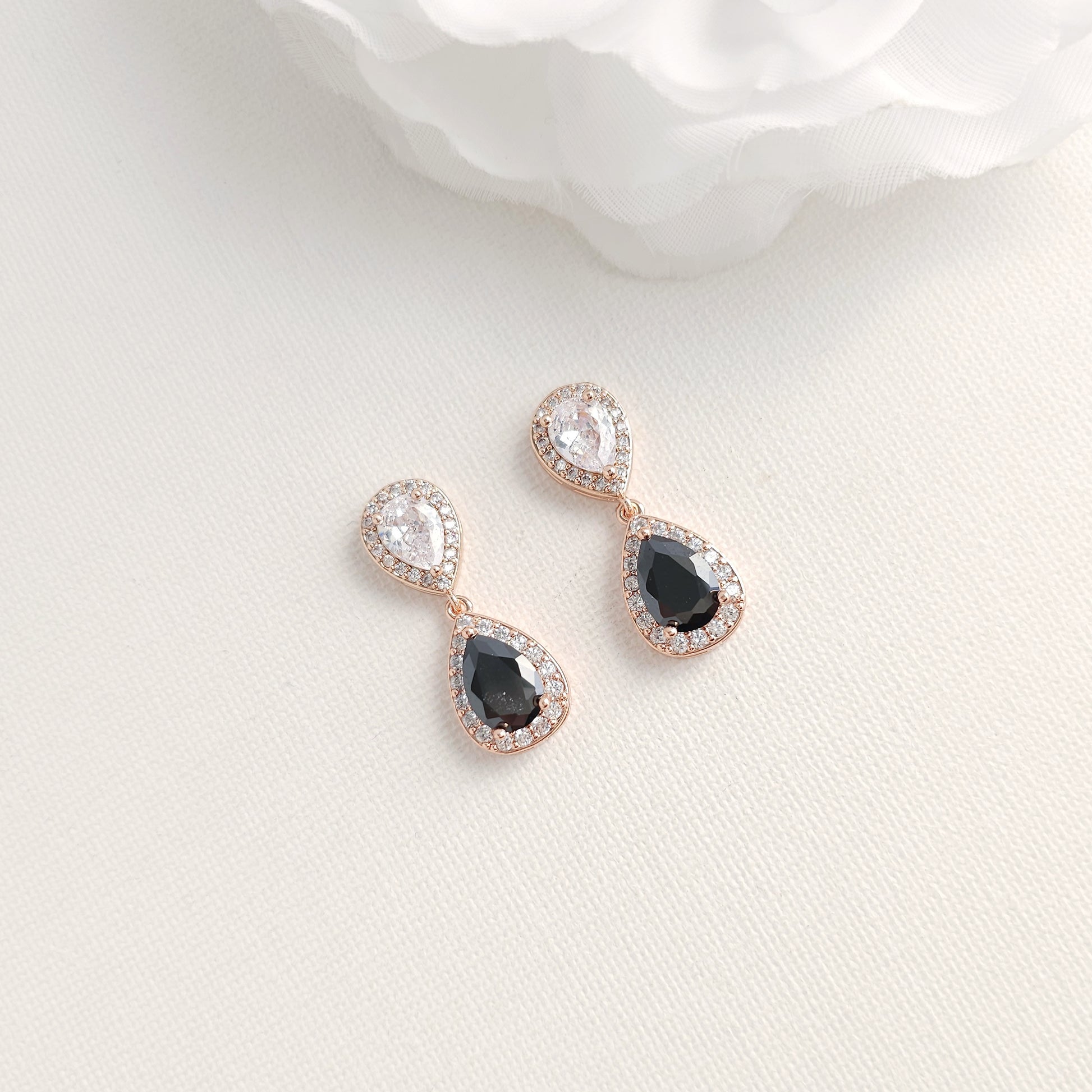 The earrings are available in a Silver, Gold, or Rose Gold finish (all featuring the black CZ drop). We are pleased to offer a Clip-on option for non-pierced ears, and a matching necklace is available upon request.