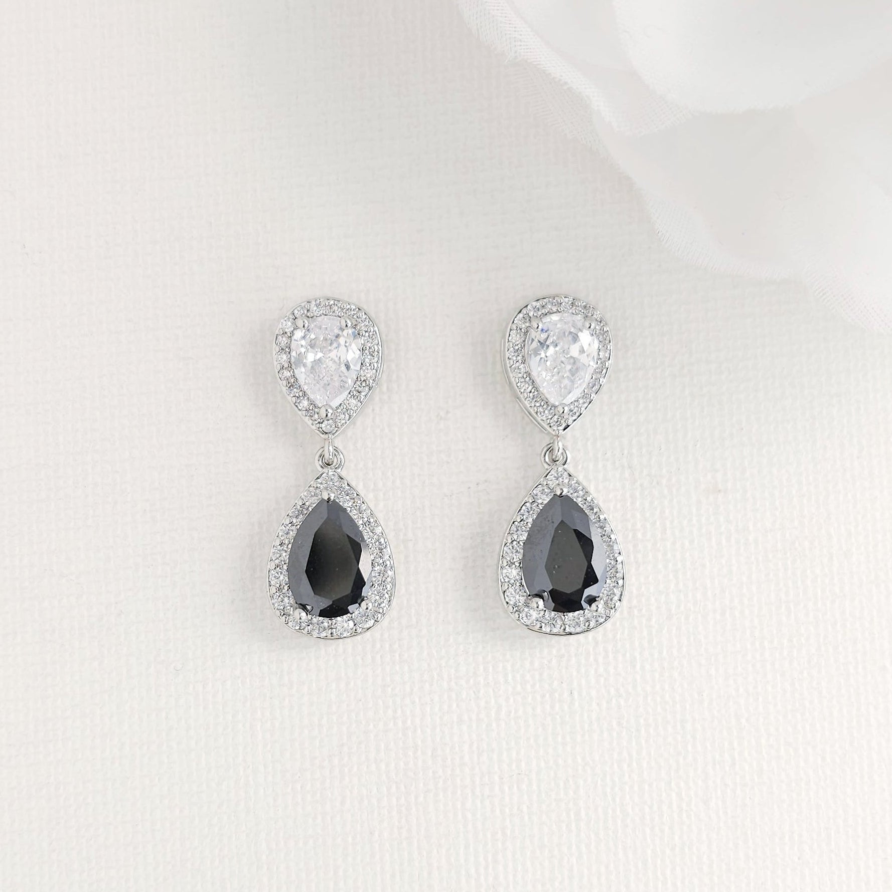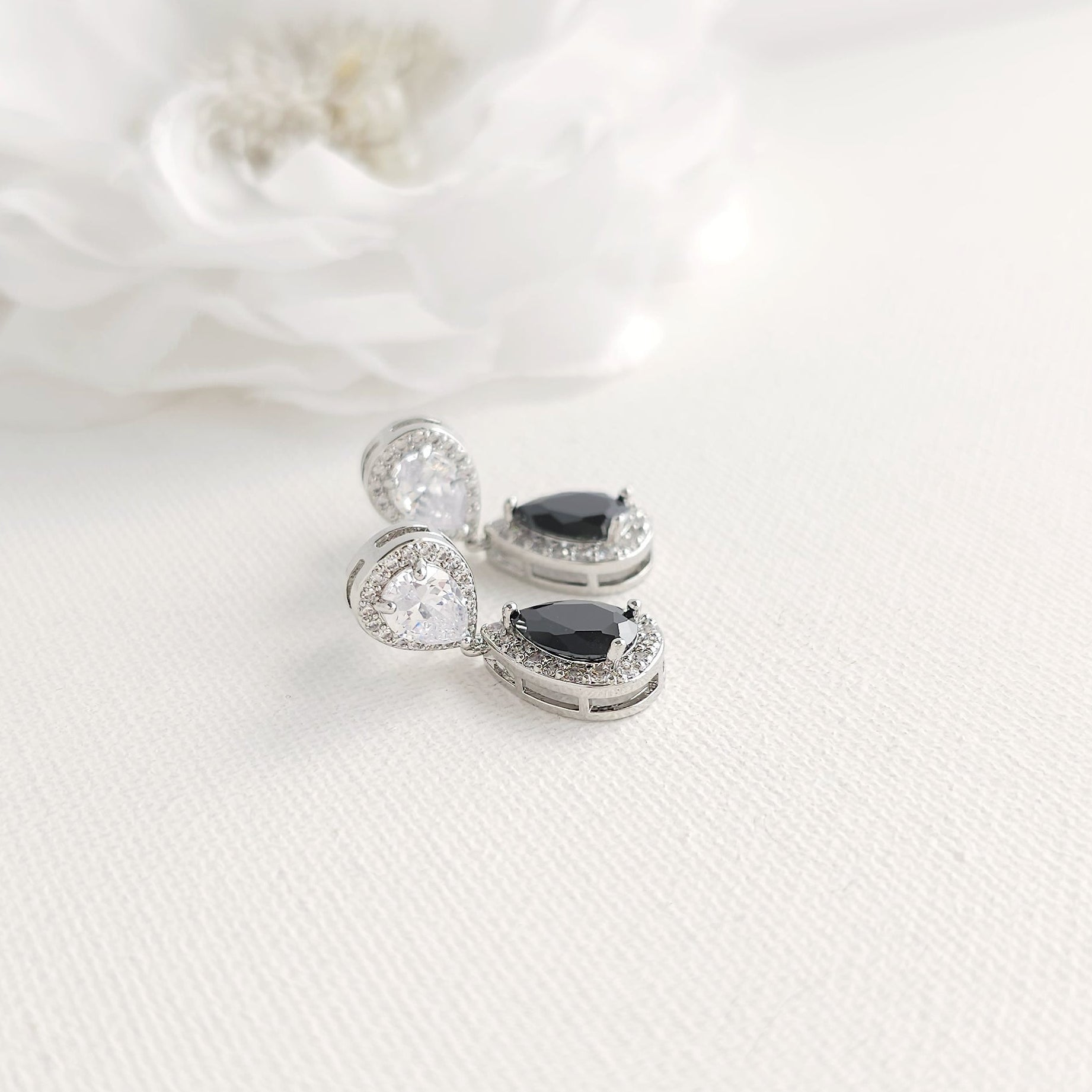Black & Clear Cubic Zirconia Drop Earrings: Elegant Contrast, Two-Tone Design- Zoe