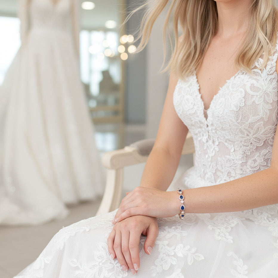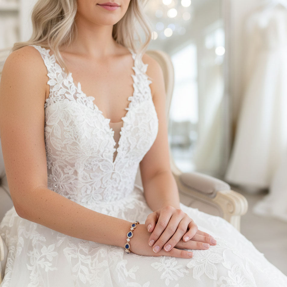 If you are looking for a gold bracelet with blue stones in them, this is a beautiful bracelet to consider. No matter the occasion, your wedding, formal, prom, or even an evening out, this would be a perfect one.