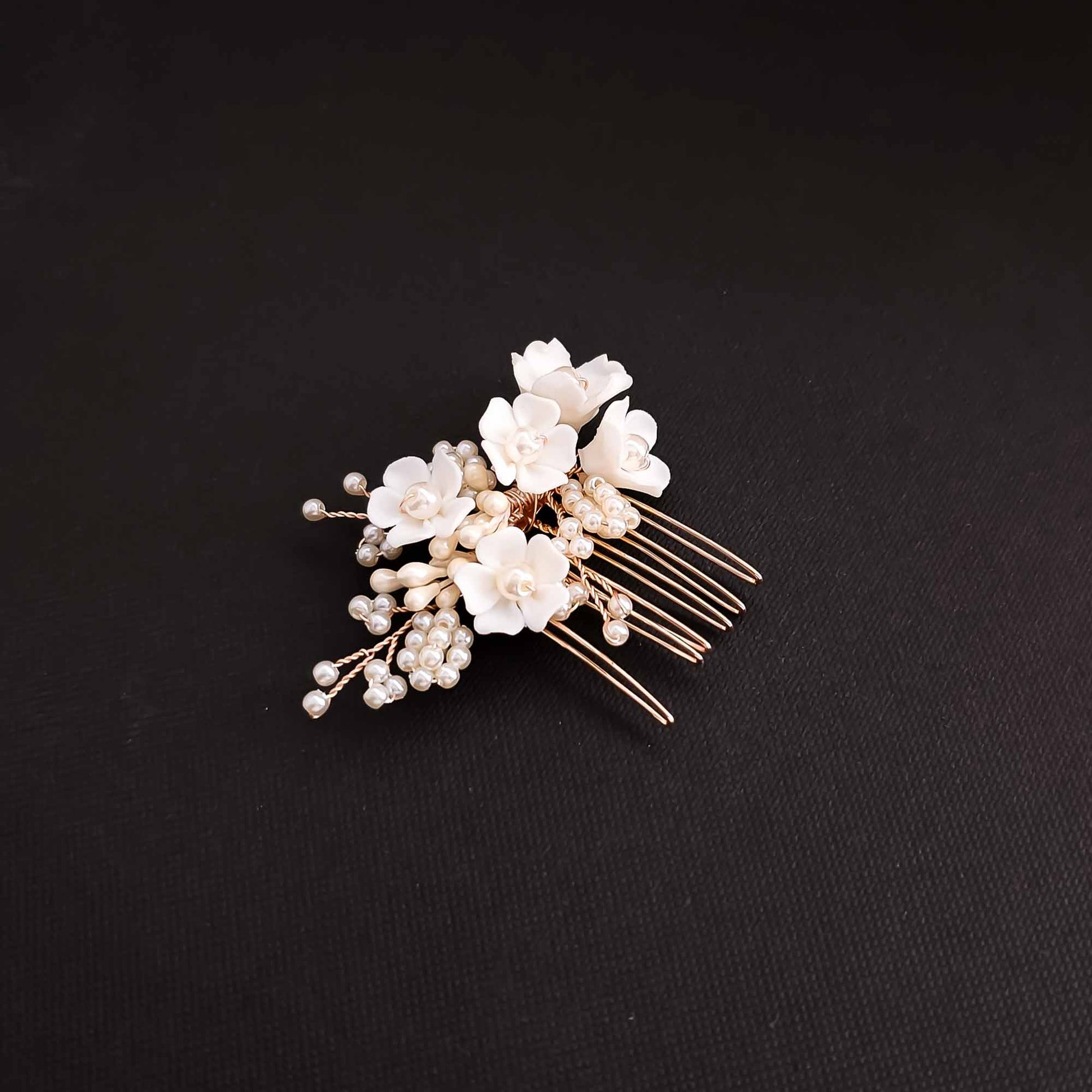 Dainty Flower and Pearl Hair Comb for Weddings-Betty